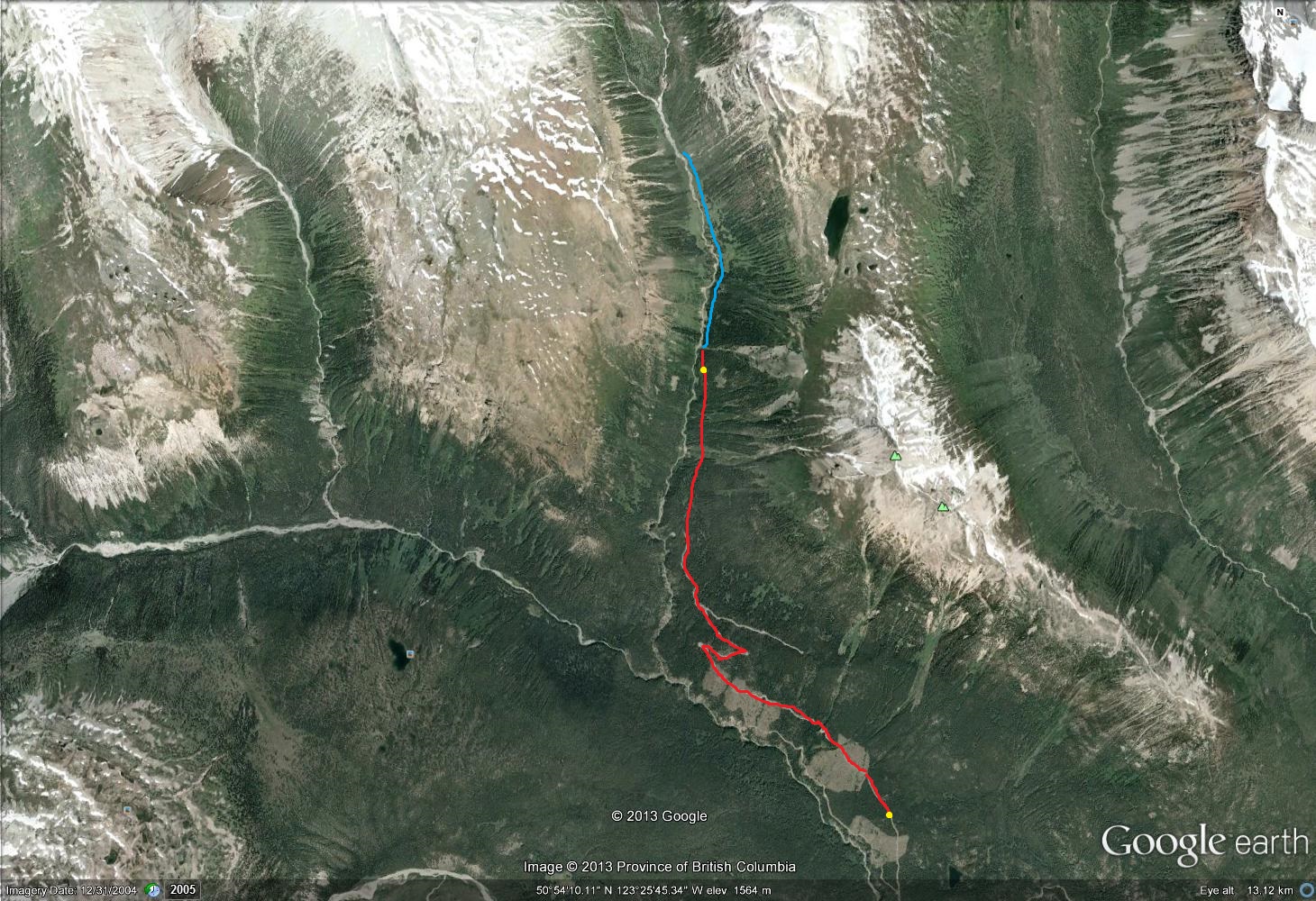 I was going to try to get all the way back to the car. That was almost 50 km, with 1300 m of descent and 300 m of climbing.