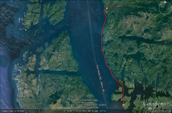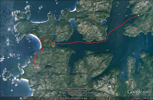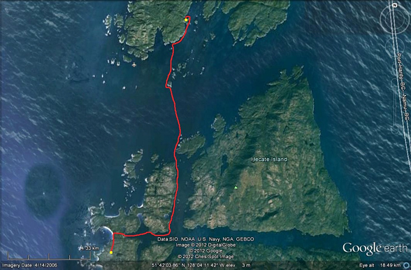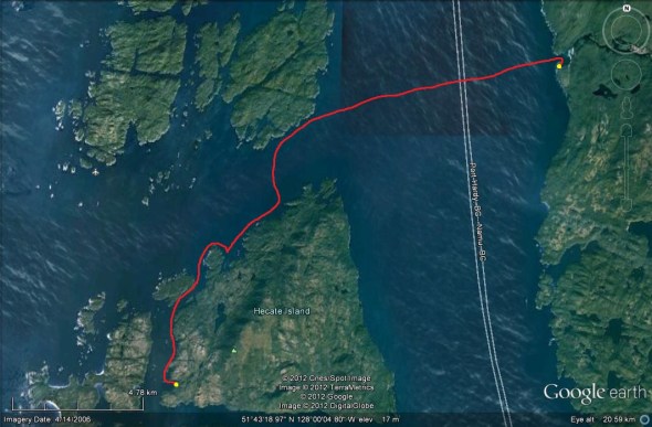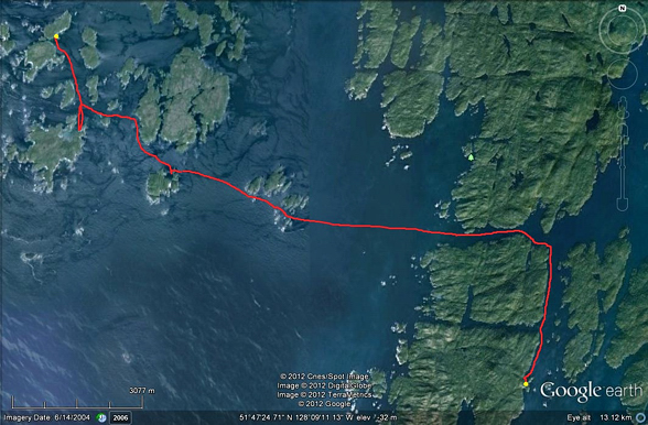 I continued on north for a little while with the currents behind me and made the almost 3 km crossing to the mainland.