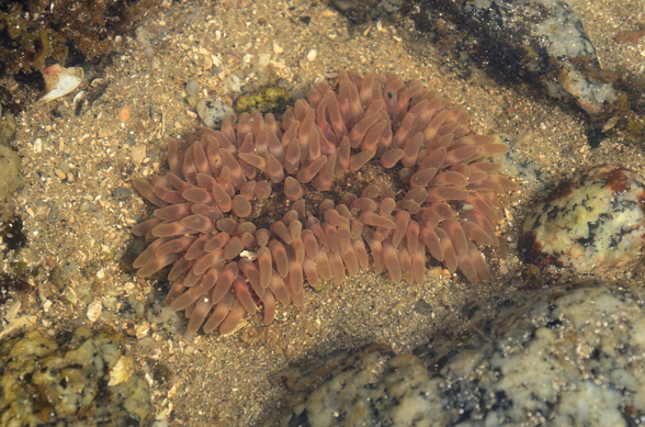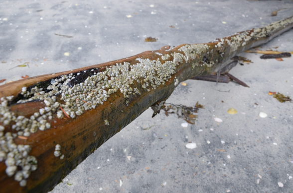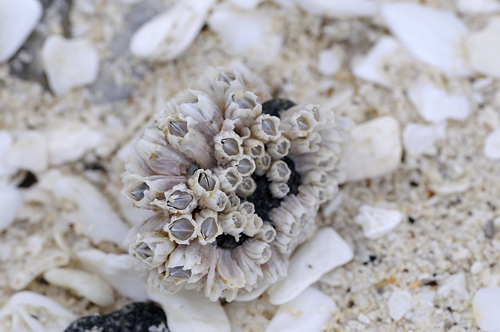 This was a small pebble that was completely encircled by live barnacles. I guess it spends its life rolling in the surf, otherwise one of those faces would be clear.