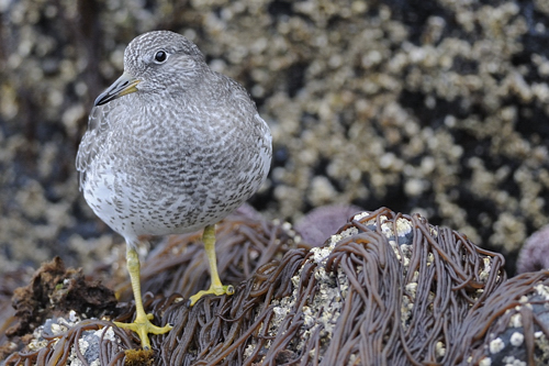 I came upon this gaggle of surfbirds (that’s actually their name). They showed very little fear and I got to within less than 10 feet. The currents were fast and in my direction so I tied off to some kelp and started clicking away. I was there for a good half hour.