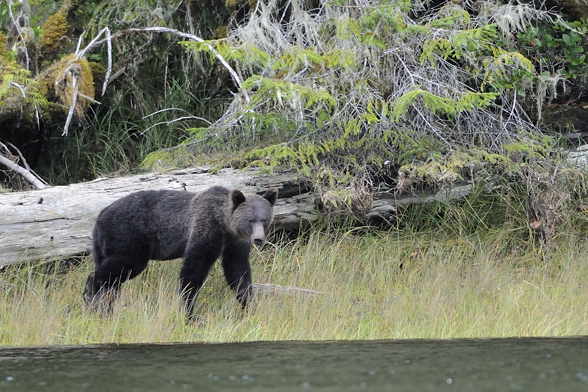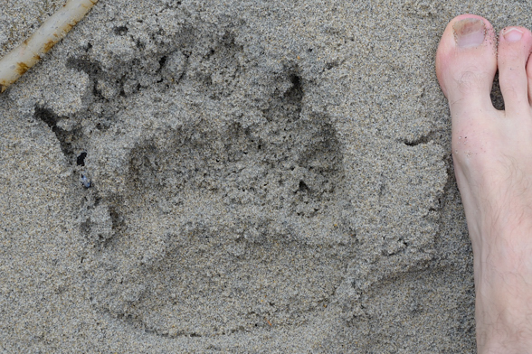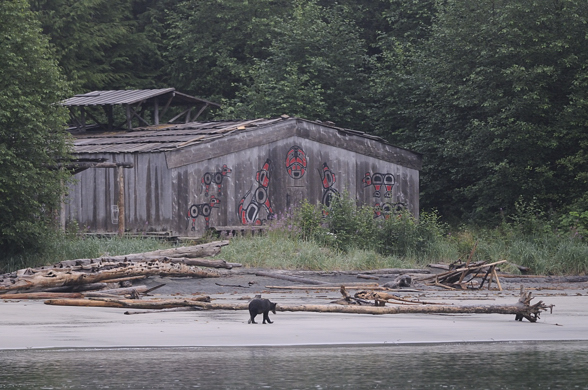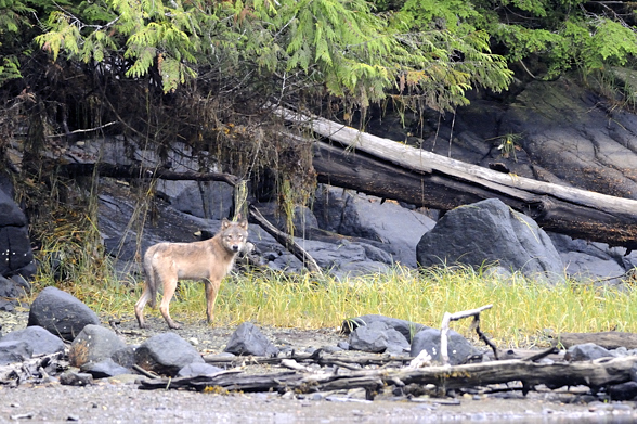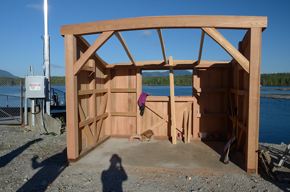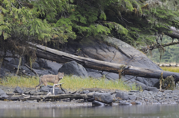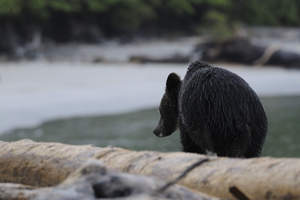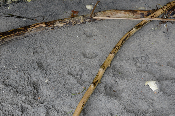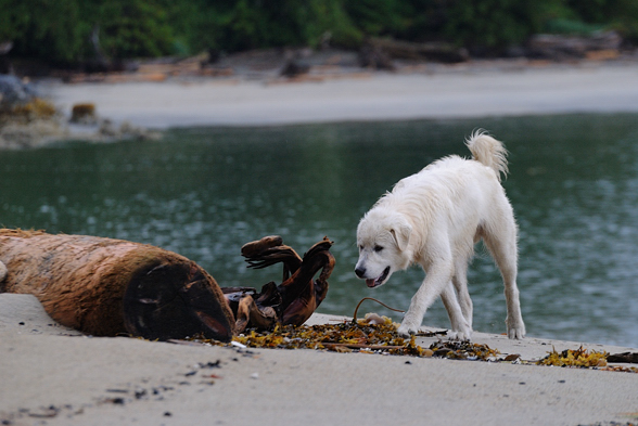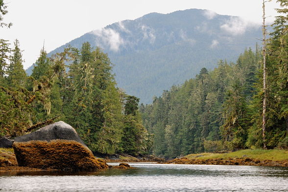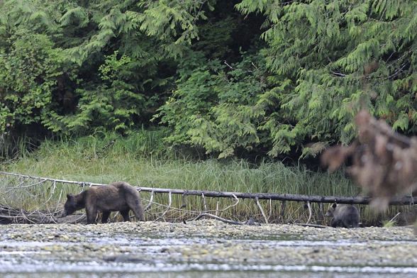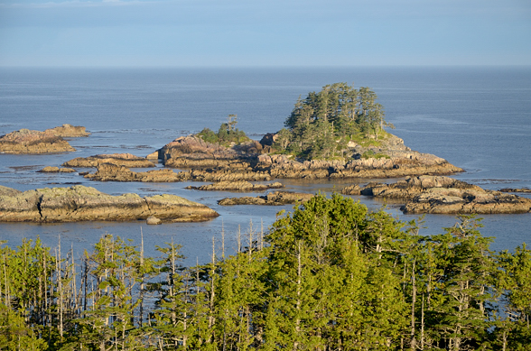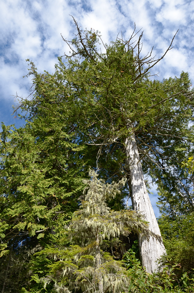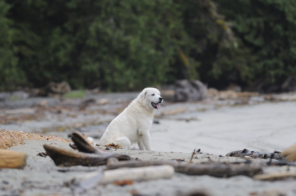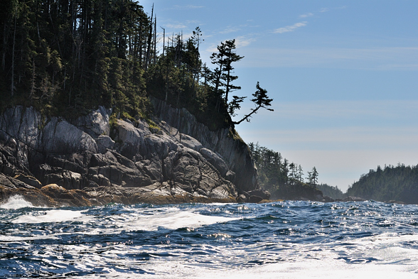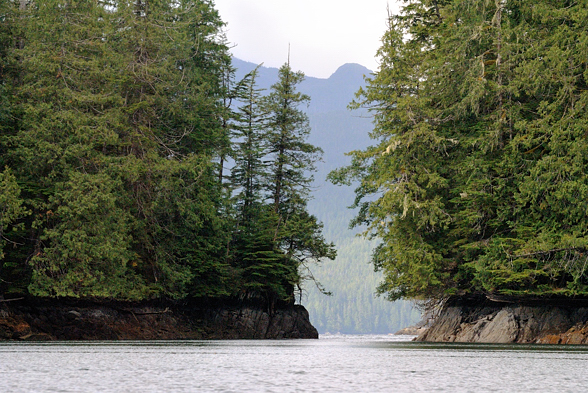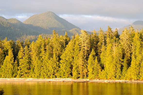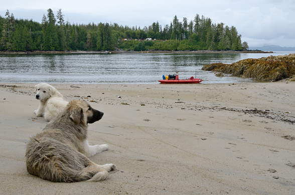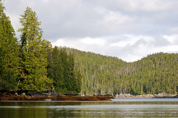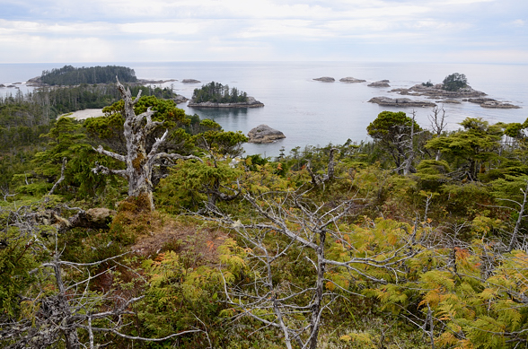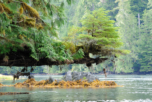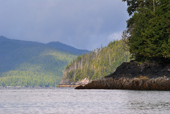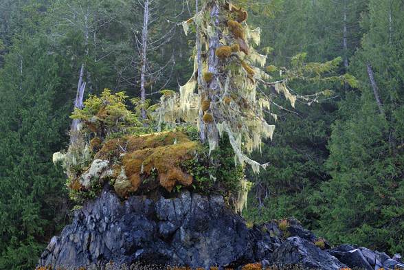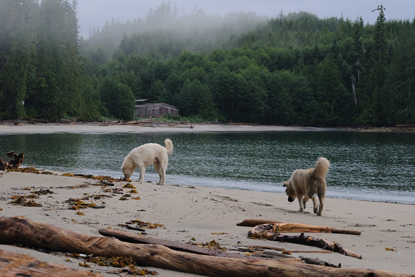 The upper tide line being encroached by forest was also thick shell deposits. Another reason this is a great camping beach is that there is a very sheltered tent site above the beach amongst the cedars, out of the weather.