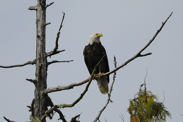 While doing the final packing of my bike next morning, I happened to scan up and this funny-shaped tree stump caught my eye… He didn’t seem to be at all bothered by me. He just watched. Maybe he was following the deer that went by last night. It’s at times like this that I wish I had brought my dedicated wildlife lens, not the mid-telephoto zoom.