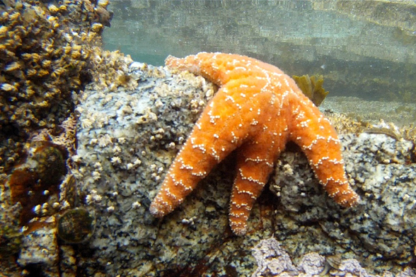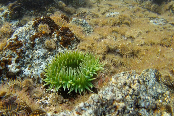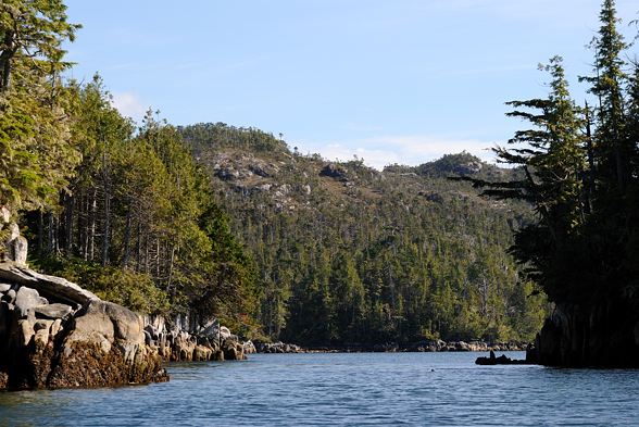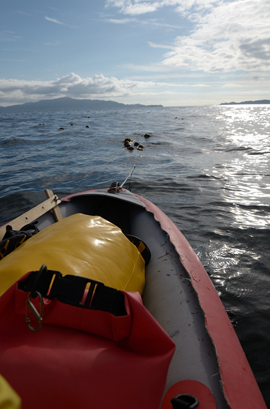 A nice easy put-in in the tropical-like waters. There was nothing tropical about the temperature of the water though — 12 degrees in the middle of August! That’s how warm it gets here! El Nino years would be quite a bit warmer, however, and that’s when more southerly species come up.