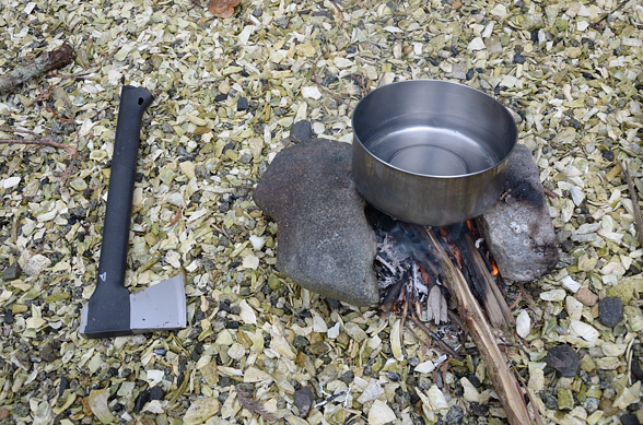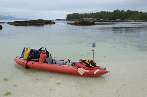 It’s a nice little spot and there appears to be a place nearby on the main part of the island that might have a small pebble beach that doesn’t get flooded, plus entry and exit would be easier there. Not ideal, but if you really need a campsite it will work.