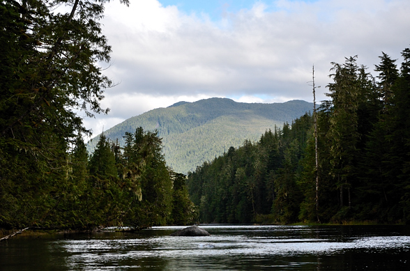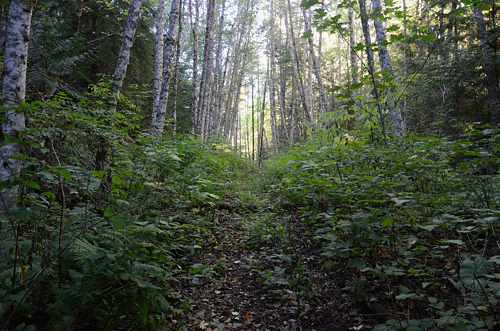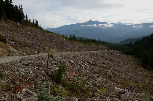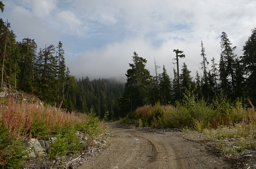 Shortly afterwards the pavement ended and I left the private lands and entered “Tree Farm License 38” which, despite being logged out, is still publicly owned Crown Land. There was a First Nations settlement agreement recently however which transferred title of a large amount of land over to a group that will hopefully better manage the resources than our culture has.