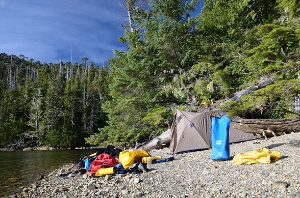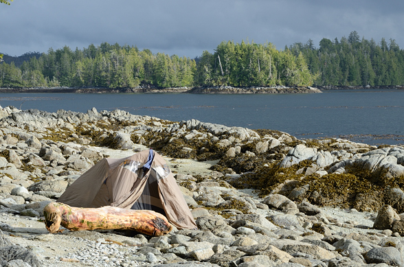 Just as I was getting back to the bay it started to pour. I set up my tarp and tent in the rain with the fine beach sand getting everywhere.