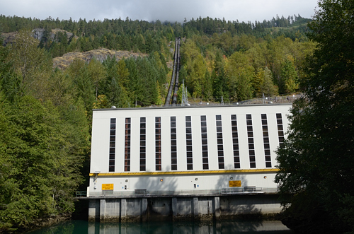 A hydro power plant on a tributary of the Squamish. The water comes all the way down those penstocks from above. The amount of power produced is proportional to the pressure (height of water), so you can see they get lots of power from that.