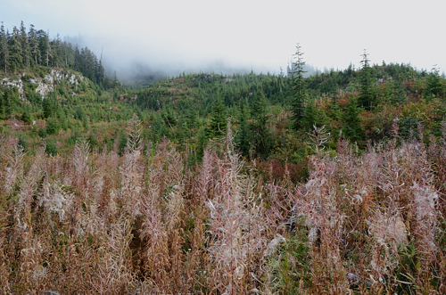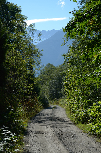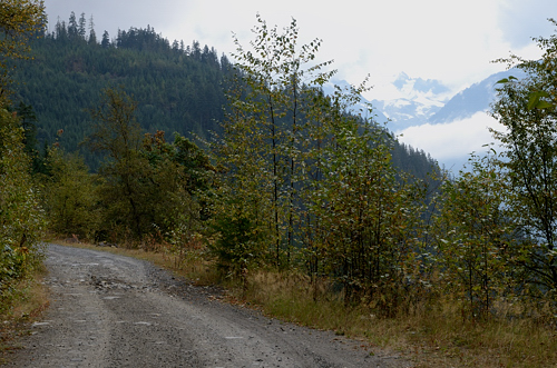 The fireweed had finished for the season, going to seed. This is very near the end of the road, at least as far as I went on it.
