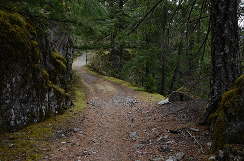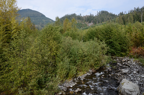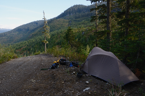 I turned back up the road going up to Tricouni to get away from the cooler and noisy valley bottom creek so I could set up camp. I found a great spot just up the hill.