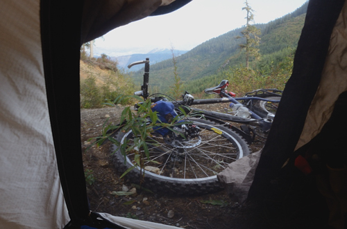 I set my tent up here. Man, I have to say, that was the second most physically gruelling thing I have done in my life. I pulled my loaded bike up 900 m to 1920 m elevation, but the trail was so unbelievably steep I had to do the last 300 m of the climb twice — once with just my heavy gear, and once again with my bike and remaining gear. So I did 1200 m. I am so glad to have my body back.