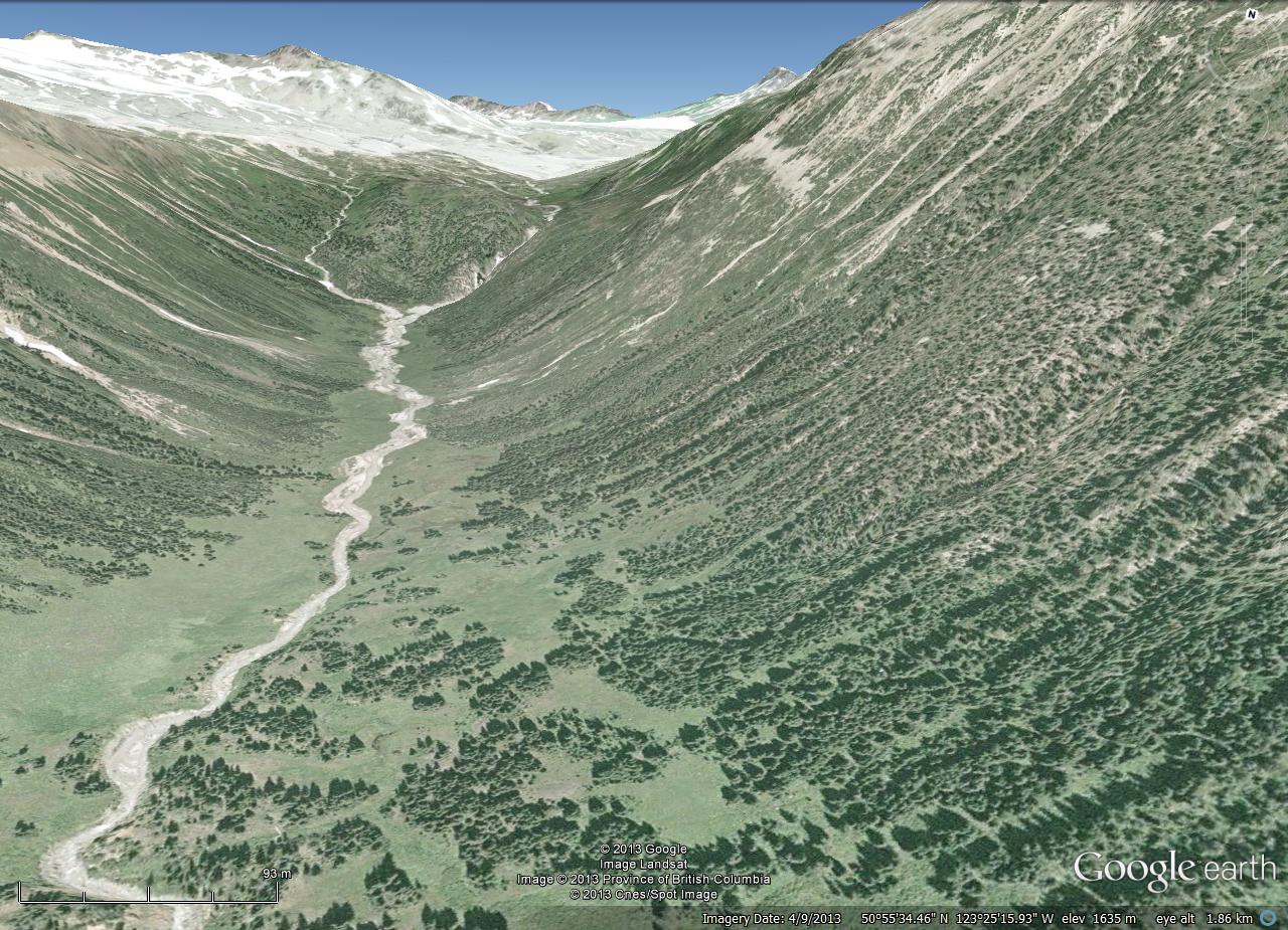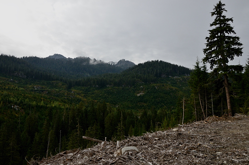 Looking back up to Cloudburst Mountain as I descended Chance Main to Cheakamus