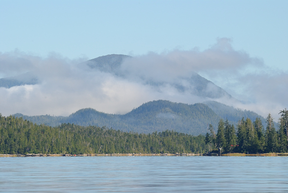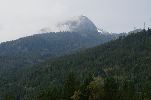 Yet another view of Cloudburst Mountain, partially obscured by clouds.
