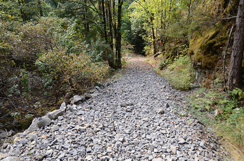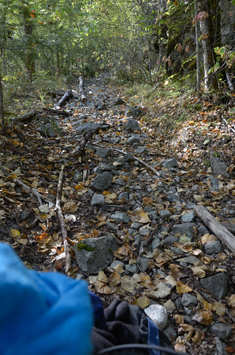 Once away from the part of the trail that serves the private residences along the river, the trail seemed disused. At the first switchback it turned steep. And washed out. Brutal.