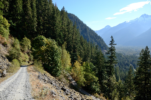 A little intimidated by what I was in for, I set off. I had 10 km of flat valley bottom riding before the spur road climbed the sidehill.