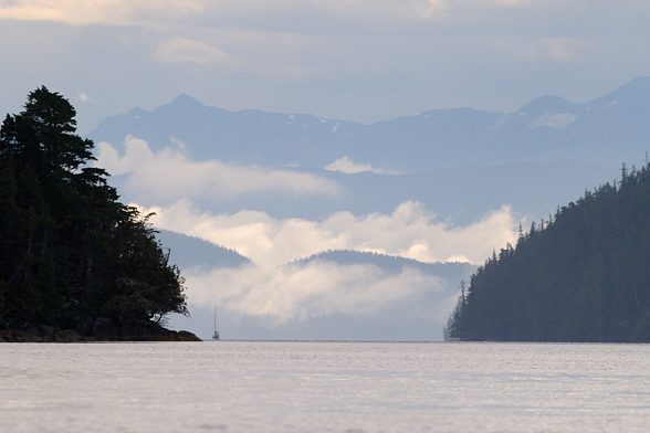 The daytime heating had created an inflow wind at Squamish and the windsurfers and saiboats were out taking advantage of it.
