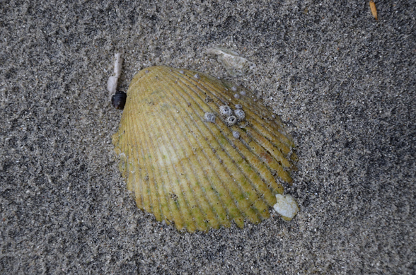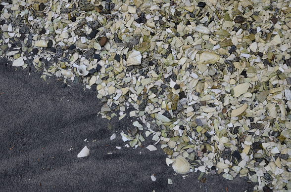 The tide was way down, exposing the impressive extent of the shell deposits.