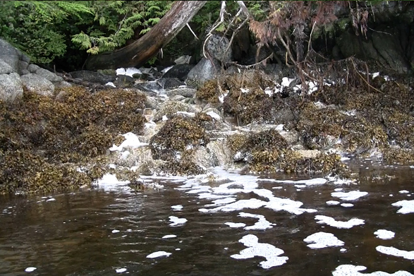 I planned to camp up near Addenbroke Island (the one with the lighthouse) and I was basically out of water. I needed to get it from the mainland somewhere as the island would not likely have any. The GPS showed a little creek entering at one point so I went ashore in the difficult waves to fill up from this picturesque little gully.