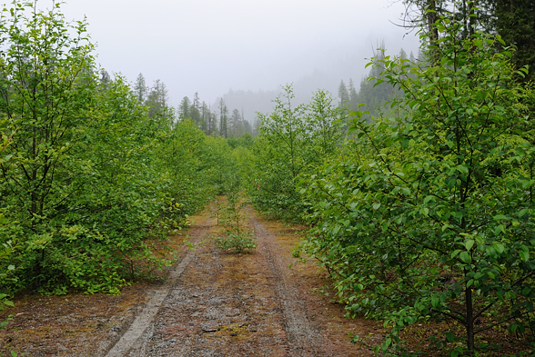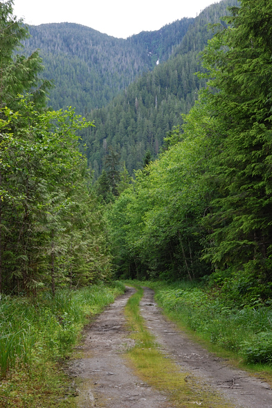 So if this option pans out, which seems likely, then I will just build some sort of wheeled trailer for my kayak, inflate it up, and walk the 12 kilometers to Wyclese Lagoon while towing my loaded kayak. That shouldn’t take more than two days. From there I will go up into Long Lake and see the estuary at its head. And then only a few kilometers back from there is another road which leads straight over to Smith Inlet, near its head. From there I would head to the Nekite Estuary and go on a grizzly tour. This route would involve little backtracking and would be a great way to get across this terrain. The other interesting thing is that these logging roads would be a limited time offer. They are a few years old and are no longer active. This means that within a short time they will be overgrown with alder and impassable.