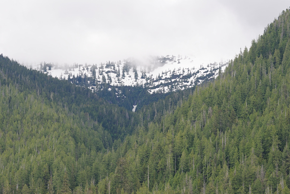 I then had to traverse back through the same patch of devil’s club, which luckily I did without incident. Then go back through the thick, steep conifer thicket on the other side of the debris chute. Luckily I had my trail from the previous day to follow, which I generally did.