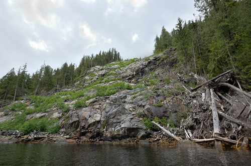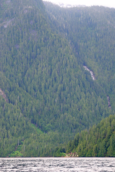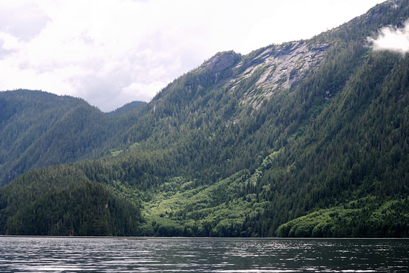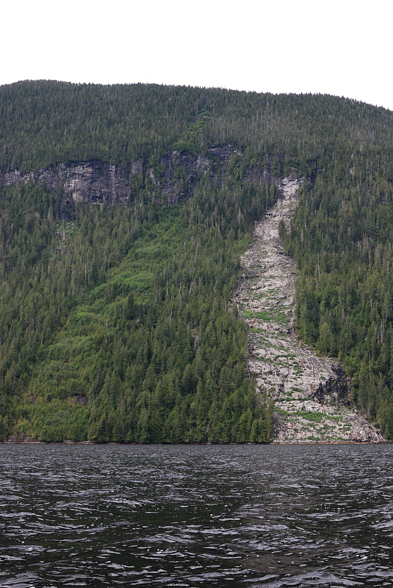 A fresh slide above Mereworth. There was more fresh logging up the Sound this year but I don’t think this contributed to the slide. They just seem to happen. We went back out to Belize Inlet and crossed over to Smith Sound behind Cape Caution.