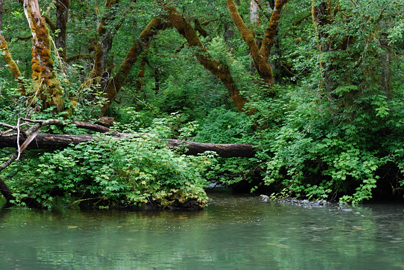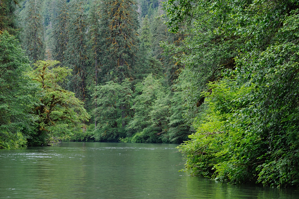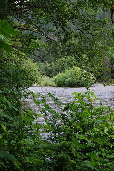Across from the new hydro generation station along Kennedy River is a riverside giant cedar forest trail.