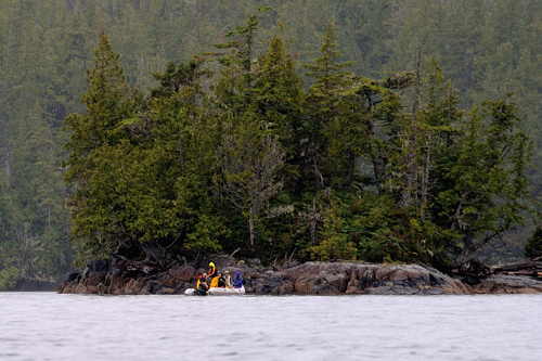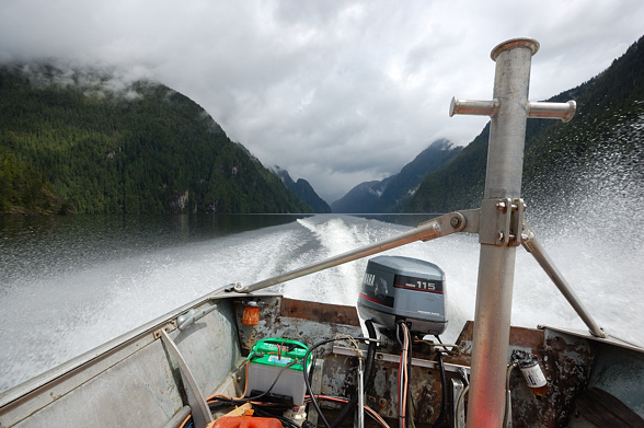 My plan was to flag down the first boat I saw and ask for help. I was hoping to catch a lift across to Port Hardy, but even just some description of the crossing would be enough help. I pondered going up to the end of Seymour Inlet which has a big river, as there would certainly be grizzlies there. But I only had a week’s worth of food left, and I’d probably be at least a week and a half to go there and back, while spending some time to observe the bears. It is a good 70 km to the end of the inlet from the Narrows.
