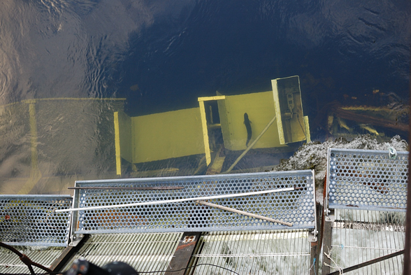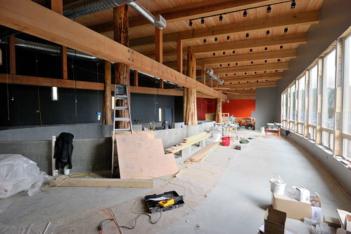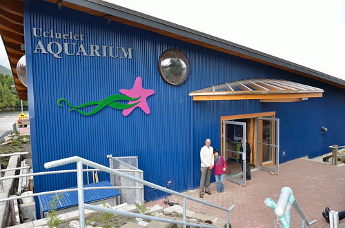 The old Ucluelet Mini Aquarium on the left, an unheated shack we have been running for the last 7 summers. The new permanent (and heated) building is the blue one on the right. Interestingly, we use a heat pump to heat the building. The sea water pumped from the dock up to the exhibits and back out is diverted through some concrete tanks you can see under the bottom left of the building overhang. This contains heat exchange plates which take the heat out of the 10 to 17 degree C sea water and heat the building with it.