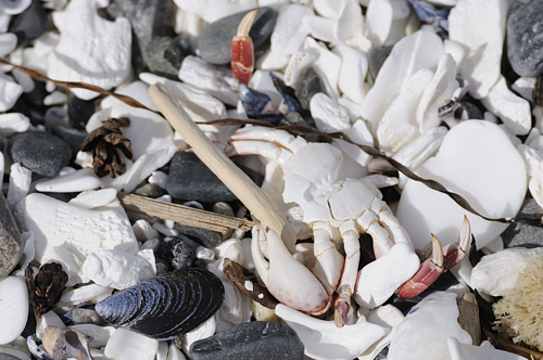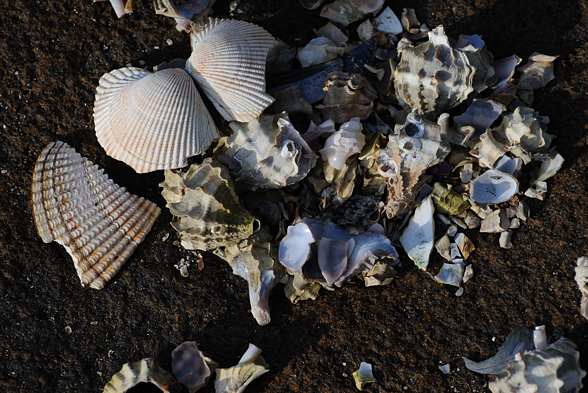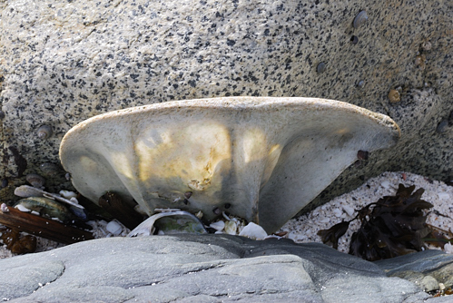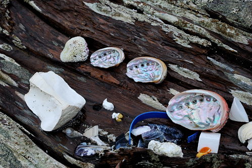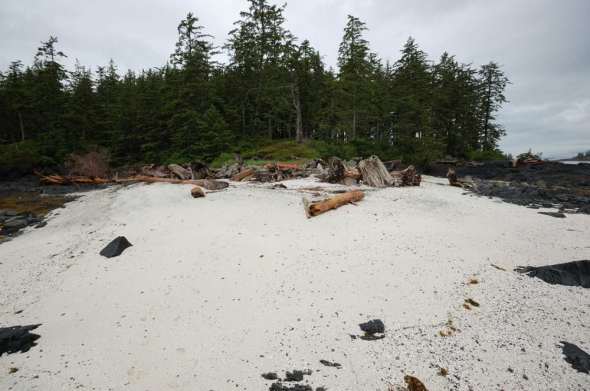 This is a stunning pure white crushed shell beach, reminiscent of a tropical coral reef. It goes all the way down to low tide and beyond. I am wondering how these beaches form, how so much crushed shell can accumulate in this spot. We don’t see these on the South Coast. It must be a midden beach, which is the “dump” site from First Nations clamming activities. There was likely a village here long ago.