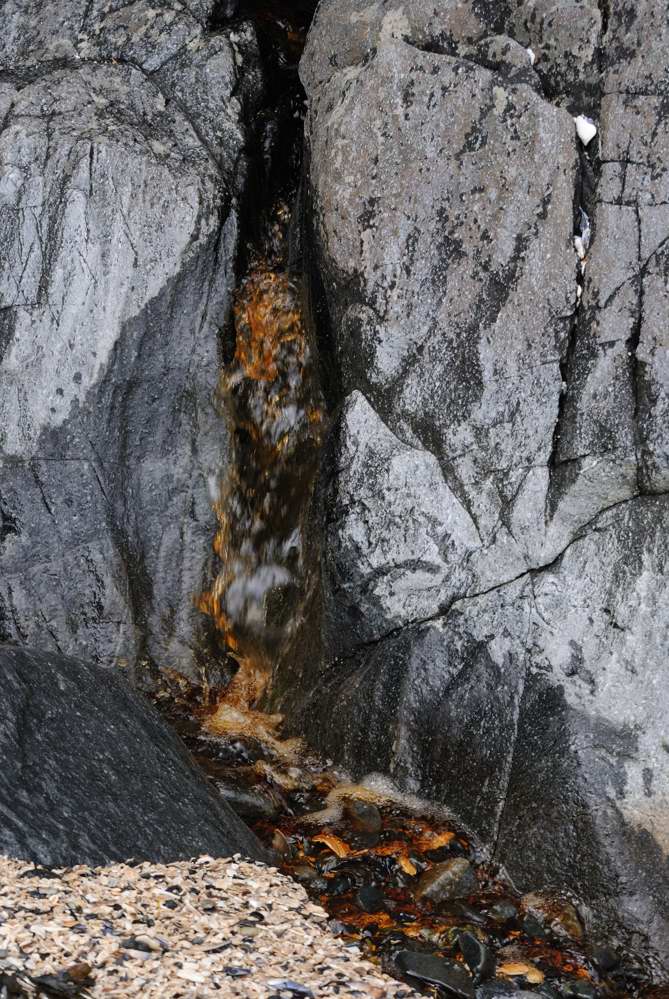 I continued along the shoreline and came around a little point and suddenly there was the waterfall I turned on my video and audio recorders and went in to fill up my bottles. There was a smaller arm of water off to the right which allowed me to back right up to the water without getting soaked.
