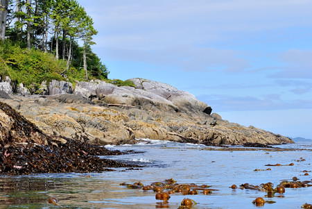 I was very wary of running out of food. I was able to catch fish and eat berries but for some reason I had a great fear of running out of food. I think my eating was as much psychological as physical, and I was intimidated by the thought of not being able to eat whenever I wanted and instead having to go out and get it. Another irrational fear. Bryan and Maggie managed to do it. In retrospect, living off the land would be an interesting aspect to my journey and I think I will try to rely on this more next year. There is certainly no lack of food here if you know where to look and how to get it. If I didn’t have to spend all day paddling I could live very well here, completely off the land (and sea). Between the seaweeds, berries, fish, and shellfish, you could gorge yourself.