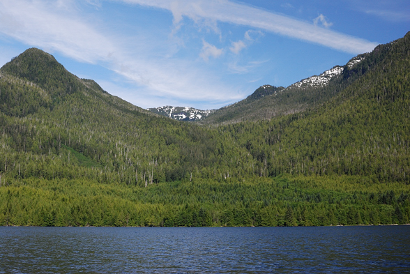 I went along the south side of the island which I passed coming in. I noticed a few Douglas-firs around. They were growing right beside big yellow cypress. Those are some valuable trees and I was surprised they hadn’t been high graded out, being so close to the water.