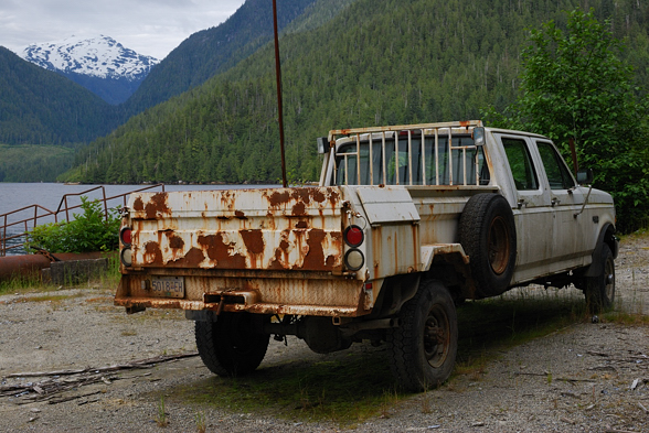 Port Hardy is an interestibg place. There are a lot of vacant buildings around. It seems like its boom times from forestry, mining and fishing have subsided, and Port McNeil has taken on a larger part of that role as well. But it retains a lot of community spirit as there are flags everywhere and there seems to be an effort to maintain the town center. Maybe I am just judging with big-city eyes, where every available square foot is allocated to some real estate scheme. But the town does seem to provide a picture of what to expect when economies inevitably stop growing — visibly boarded up, vacant businesses, something never seen in Vancouver for any significant length of time.