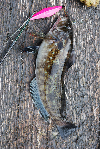 I wanted to catch some fish so I dropped my buzzbomb down to the sea floor in between the floating logs. I caught small rockfish and threw them back. I tried at the outer edge of the complex and it was deep, probably about 60 feet. I ended up catching a few keepers an on one cast, which turned out to be my final one, I caught something BIG. This thing did not want to come up. I got really exciting and wondered what it was. I had to laugh when it got to the surface and I saw that it was a dogfish, a type of shark which is really common around here and generally thought to be a nuisance.