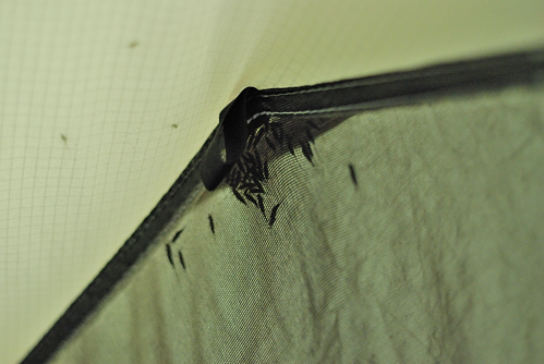 I slept without the rain tarp over my tent last night as usual since the moisture from confining my breath inside the tent is generally worse than the dew I get from having my tent open. The fog formed early last night and after that there should be no further dew on the tent. It was very thick fog this morning but the layer was not very deep as I could see the mountains and sun poking through.