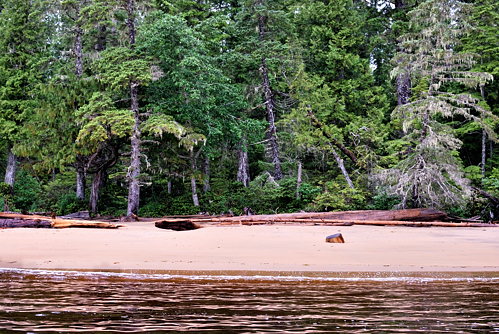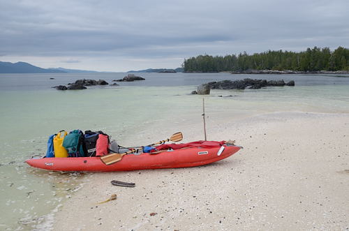If I was going to pack it in for the year one option to get back out was to go backtrack down the coast from where I came and back to Telegraph Cove. Another option was to cross over Queen Charlotte Strait straight to Port Hardy, either by paddling across or by catching a lift. But I had absolutely no map of that crossing. I knew there were islands in the middle of the Strait but I did not know where. Any way though, I was currently in the middle of “nowhere” and had several days in front of me to get out.