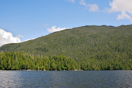 I paddled by nice second growth forest on my way out. It reminded me of Indian Arm by Vancouver. The difference of course being that there was no one here; I was totally alone.