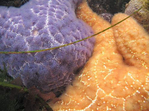 I rounded points and stared into the clear water to see leather stars and ochre stars perched on the rocks. There was decent current around the points.