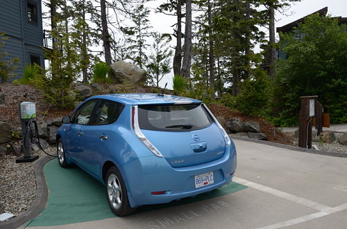 I believe I just made the first journey out to the west coast in a Leaf. The other week Sun Country added a Level 2 charger to the Hospitality Inn in Port Alberni, as well as one at the Black Rock resort in Ucluelet. The one at Black Rock isn’t as critical as you’re staying overnight in Ukee anyways so even a 120 V Level 1 charger (i.e. a wall plug) would do.